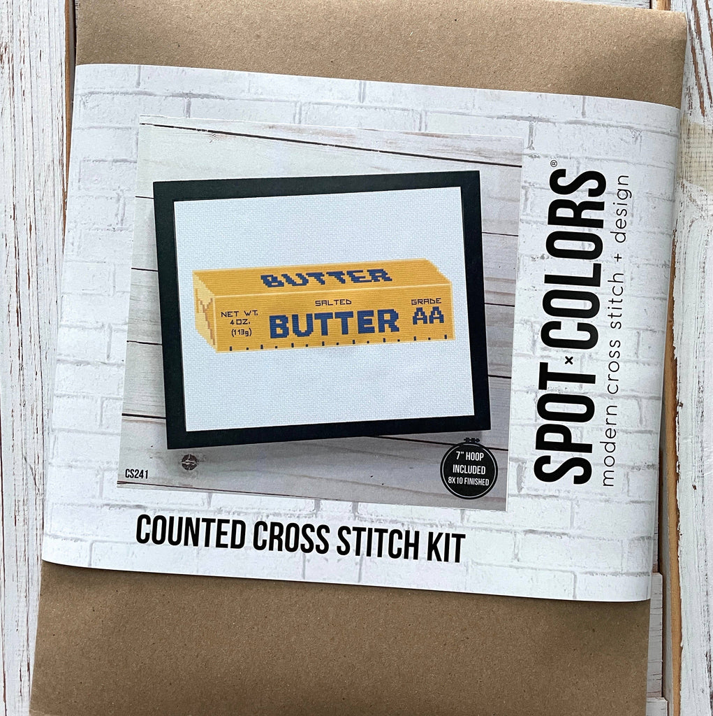 pattern, instructions, links to videos, image, color list, DMC threads, aida 14 count fabric, needle, wood hoop