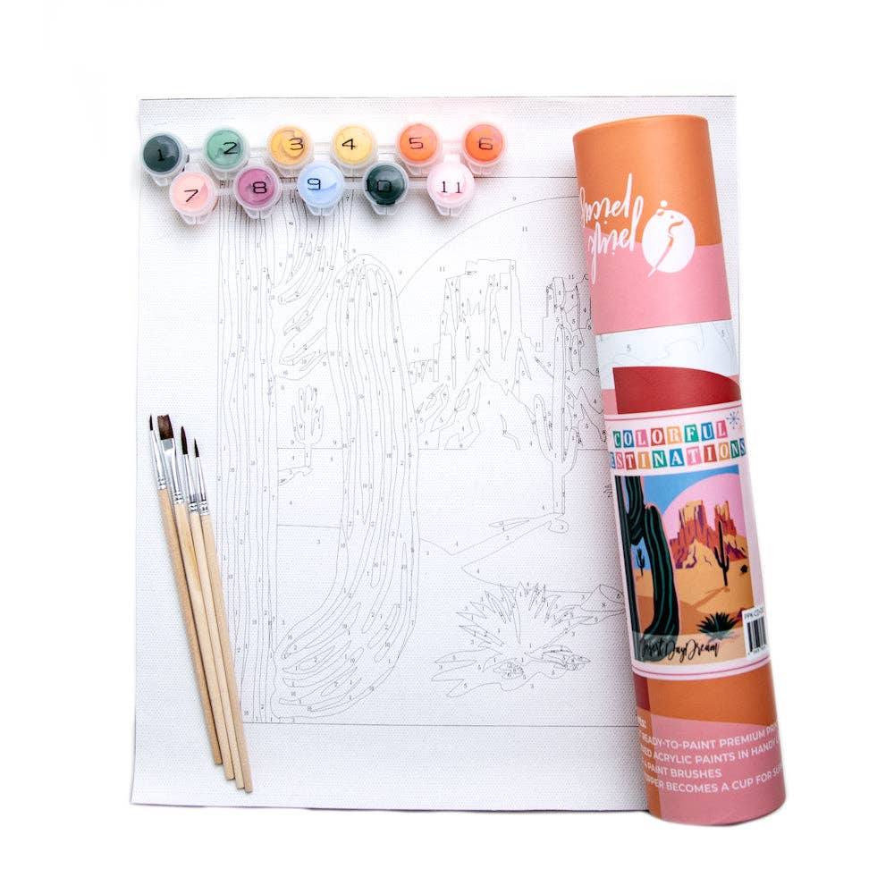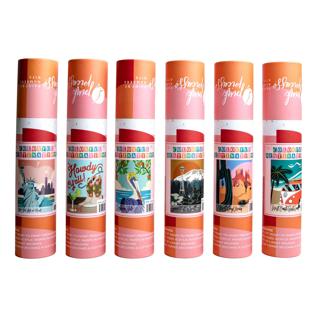 Ready your paint brushes and prep your paint stations, Pink Picasso Kit’s Colorful Destinations collection is ready for take-off! From New York to Seattle and some fan-favorite places in between, we’re bringing a sense of wanderlust straight to your home. No passport required 🎨✈️ So say goodbye to your favorite coffee shop destination mugs, and hello to an even cooler keepsake—a hand-painted memory garden for your walls! Desert Daydream Capture the memory of your Desert Daydreams from the cool comfort of your home! With rocky mountains, colorful cacti, and a pastel sunset vista, this kit is perfect for anyone who has visited our American southwest.