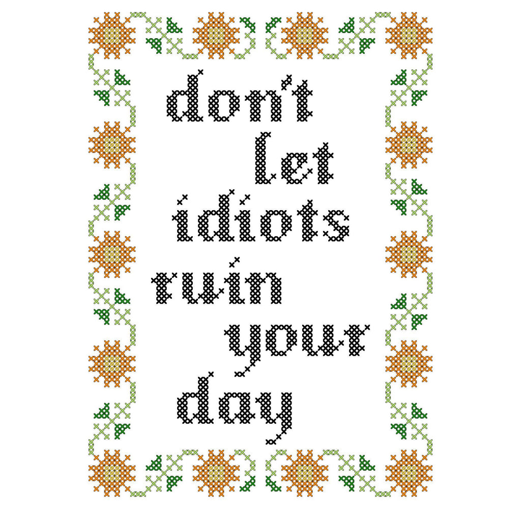 Don't Let Idiots Ruin Your Day Deluxe Cross Stitch Kit