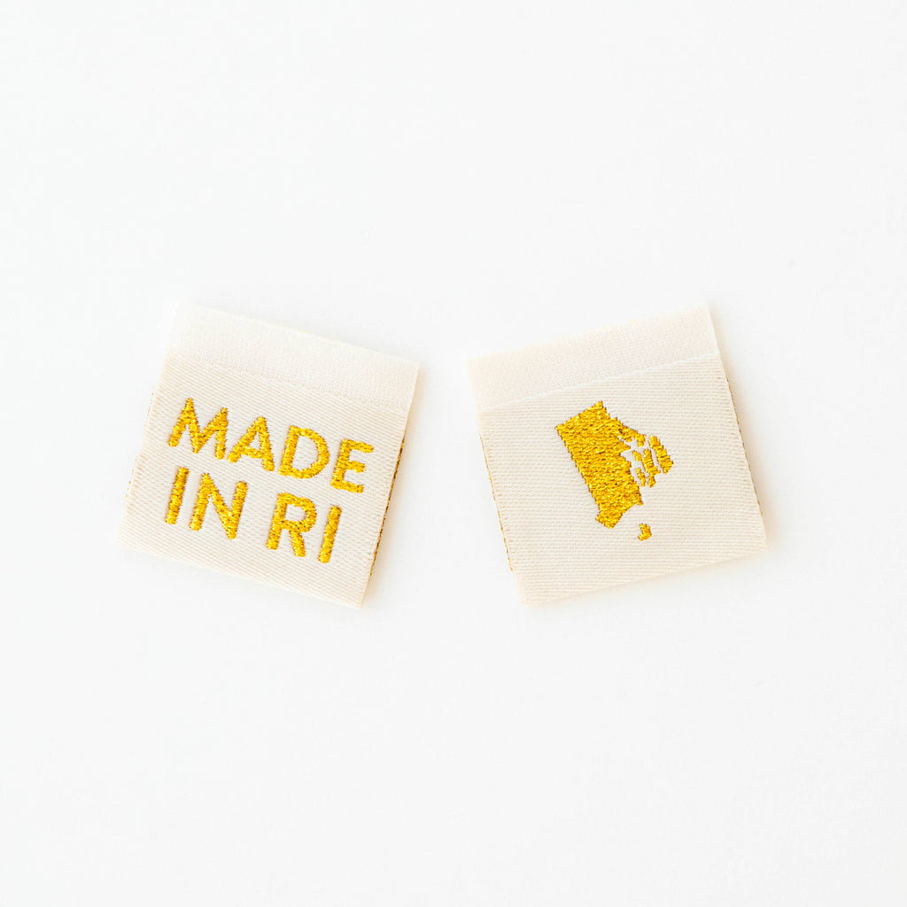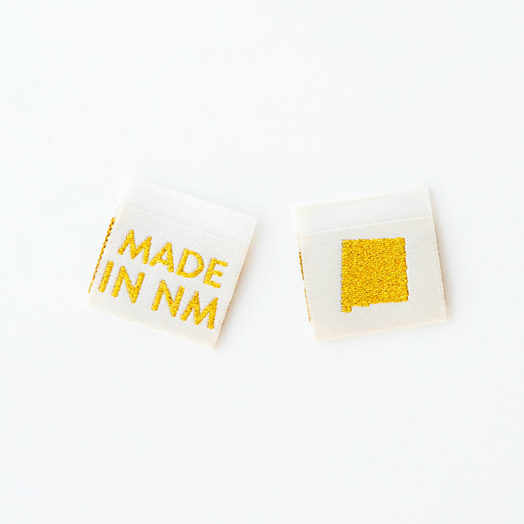 Show off your state pride on all your handmade projects! The labels feature text that says "Made in __" with the abbreviations of each state name on one side and an adorable state silhouette in metallic gold thread on the otheir side. The high-quality woven labels are fully washable and can handle the heat of the dryer.