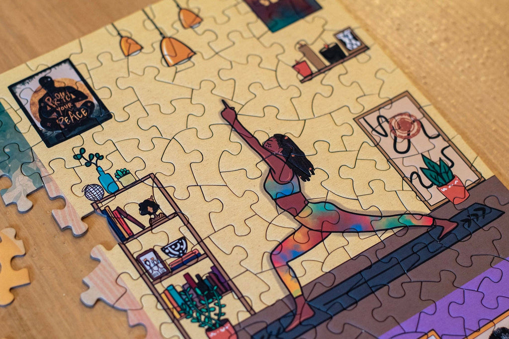 Unwind, refresh, and restore your inner harmony with "Moments of Zen" our captivating 500 piece puzzles designed to help black women find their serene moments amidst the hustle and bustle of their busy lives. Embracing the idea that movement is medicine, this puzzles provide a dedicated space for yoga practice and deep breathing, fostering a sense of calm and well-being. Each image showcases a harmonious blend of peaceful and vibrant scenery, perfectly complementing your relaxation journey. Elevate your downtime with "Moments of Zen" and create a tranquil oasis within your everyday surroundings.