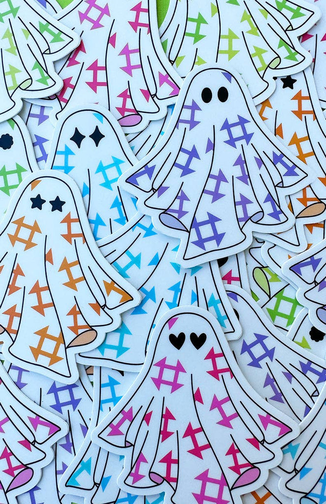 The Quilt Ghost Stickers are the perfect spooky season accessory for any quilter! Each ghost features a churndash pattern in the "quilt" and a different color scheme. All our die cut stickers are made of a thick durable vinyl with a protective laminate coating. This makes the sticker resistant to fading, scratching and water - it’s even dishwasher safe!