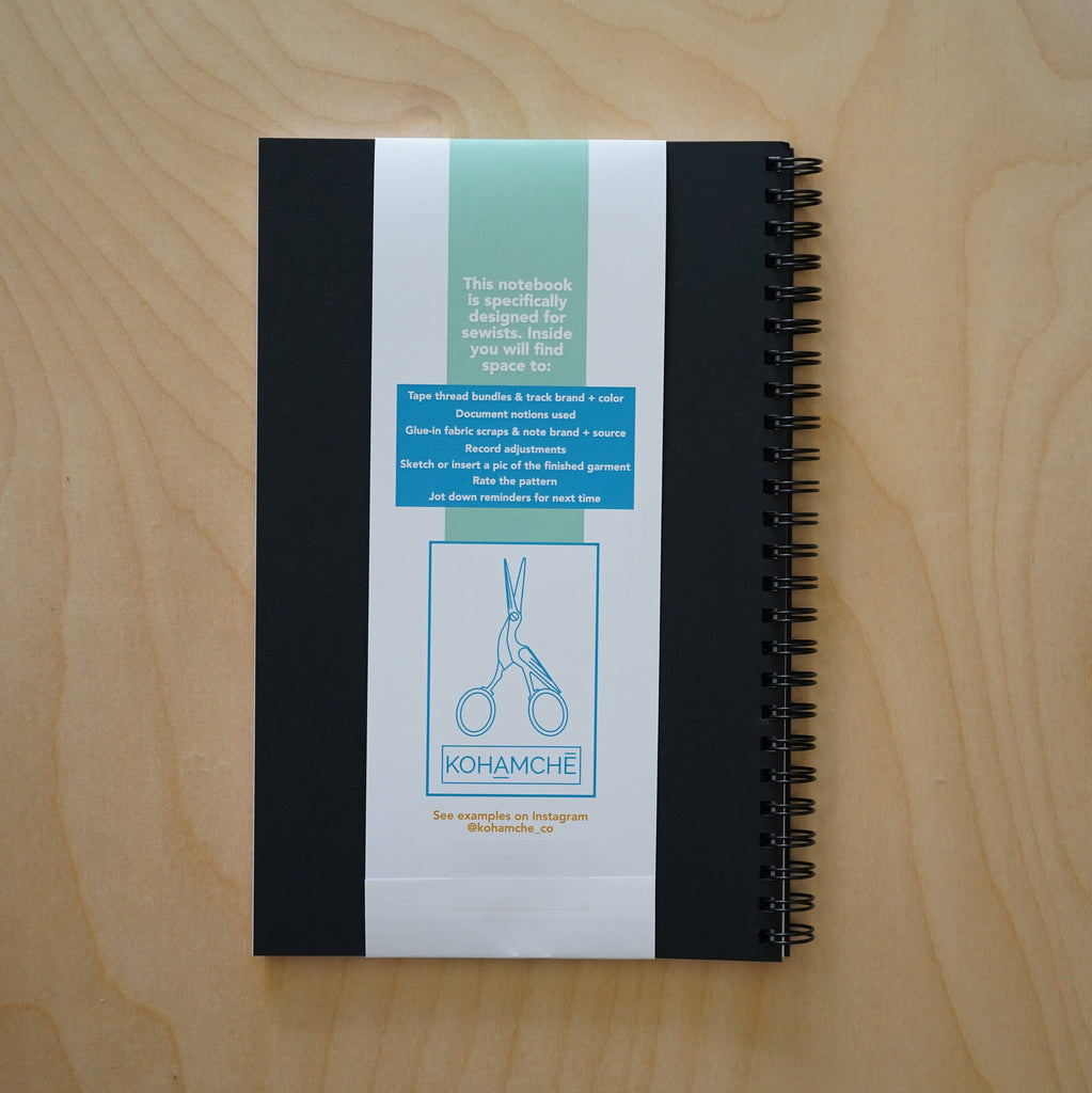 A notebook specifically designed for sewists. These notebooks are designed to help document the garments you sew. Easily revisit your makes and reference elements you might forget if you hadn't written them down. There is space to track fabric, thread, and notions used. Includes a grid to sketch the make or tape in a photo, as well as room to document adjustments made, rate the pattern, and leave reminders for yourself for next time. The interior pages are made from a cover weight as opposed to a text weight making for a high-end product. Space for documenting 20 makes. Page size: 5.5 x 8 inches Page count: 21 pages Metal coils: Black