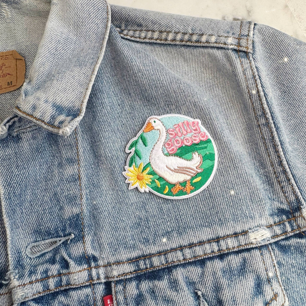 Our Silly Goose Patch is the perfect accessory add-on for coquette girlies and the silliest of girls. Cute whimsy gift with a warm pastel palette. Use this patch for an instant update on just about anything! Wildflower + Co. patches feature iron-on backing & ship with instructions. ♥ Measures approx 3” w x 2” h ♥ Designed by & exclusive to Wildflower + Co. ♥ Iron on backing; ships with instructions ♥ Imported ♥ Intended for use by adults only ♥ Listing is for 1 patch (unless choosing the bundle) Make it your own!